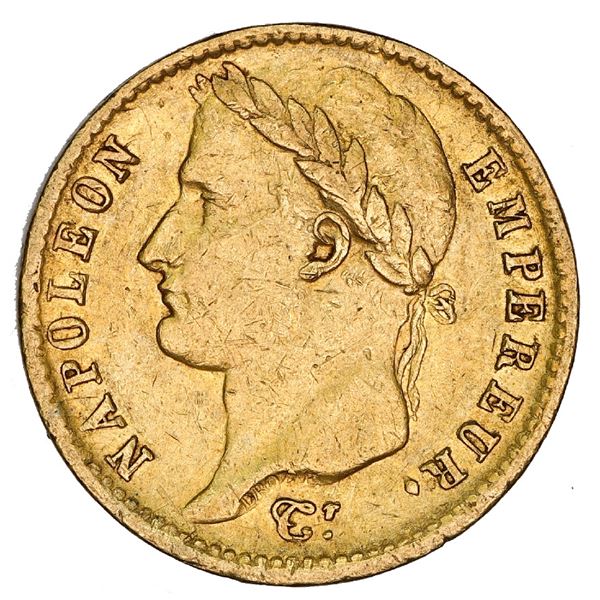 France (Bordeaux mint), gold 20 francs, Napoleon I, 1811-K, NGC AU 50. Gad-1025; KM-695.4; Fr-513. 6.41 grams. Light marks and wear, traces of luster