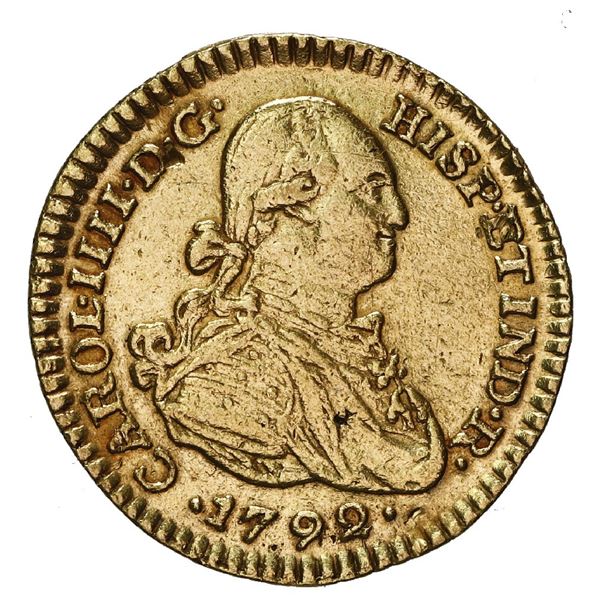 1875 - Popayan, Colombia, gold bust 1 escudo, Charles IV, 1792 JJ.Sedwick & Associates, LLC