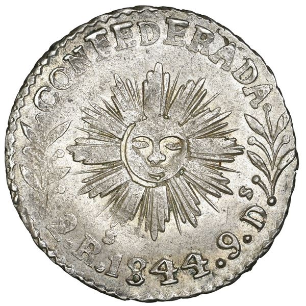 762 - Cordoba, Argentina, 2 reales, 1844, CONFEDERADA, dot under rosette, NGC MS 63 ("top pop").Sedwick & Associates, LLC