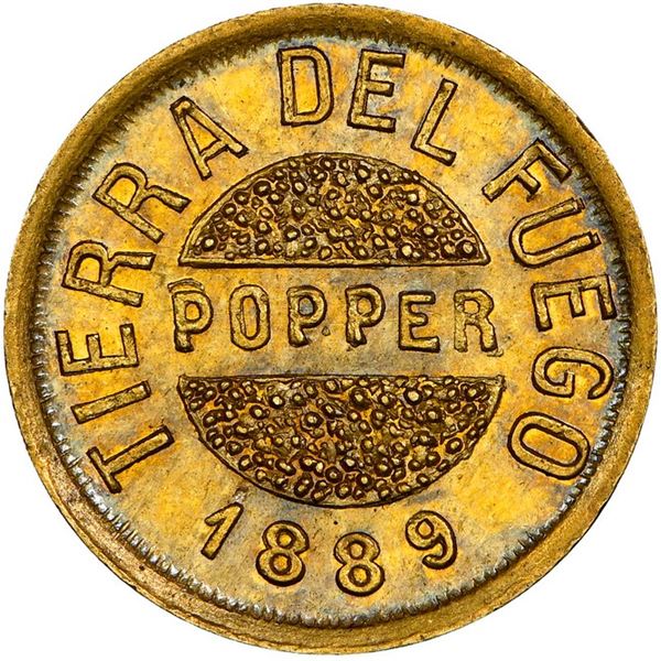 764 - Tierra del Fuego (struck in Buenos Aires), Argentina, gold 5 gramos, Popper, 1889, rare, NGC MS 63.Sedwick & Associates, LLC