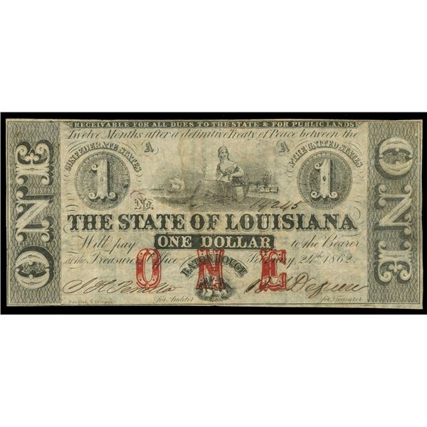 1246 - Baton Rouge, Louisiana, State of Louisiana, $1, 24-2-1862, serial 14245, printed on Bank of Texas reSedwick & Associates, LLC