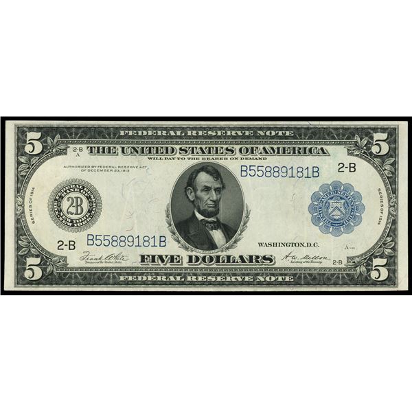 1256 - Washington, D.C., USA, Federal Reserve Note, $5, series of 1914, serial B55889181B, White-Mellon.Sedwick & Associates, LLC