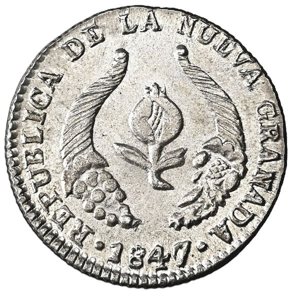 847 - Bogota, Colombia, 1/2 real, 1847 RS, NGC MS 68, finest known in the NGC census.Sedwick & Associates, LLC