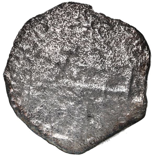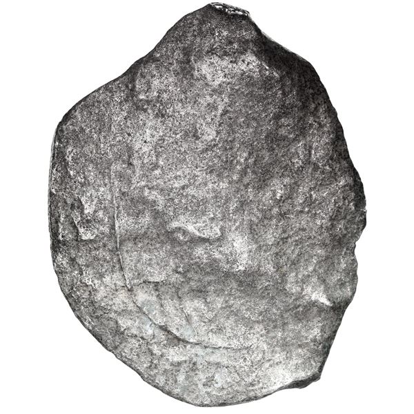 Potosi, Bolivia, cob 8 reales, Philip III, assayer not visible, Grade 3. KM-10. 20.27 grams. Shield side corroded but with bottom half visible includi