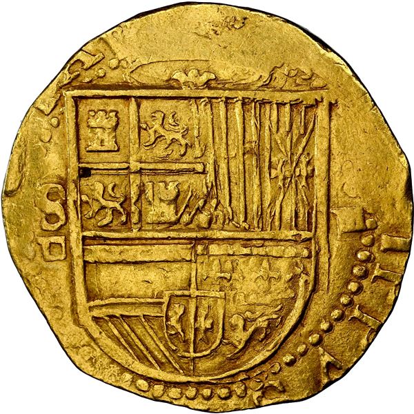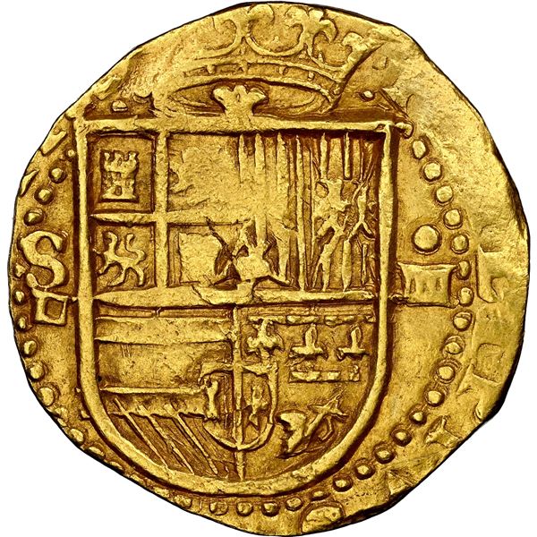 1412 - Seville, Spain, gold cob 4 escudos, Philip II, assayer Gothic D below mintmark S to left.Sedwick & Associates, LLC