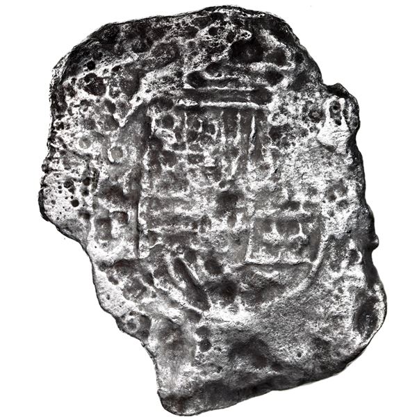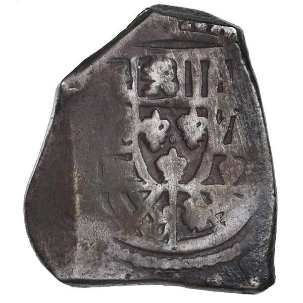 Mexico City, Mexico, cob 8 reales, Philip IV, assayer not visible. KM-45. 27.11 grams. Full weight with next to no surface corrosion, bold shield and