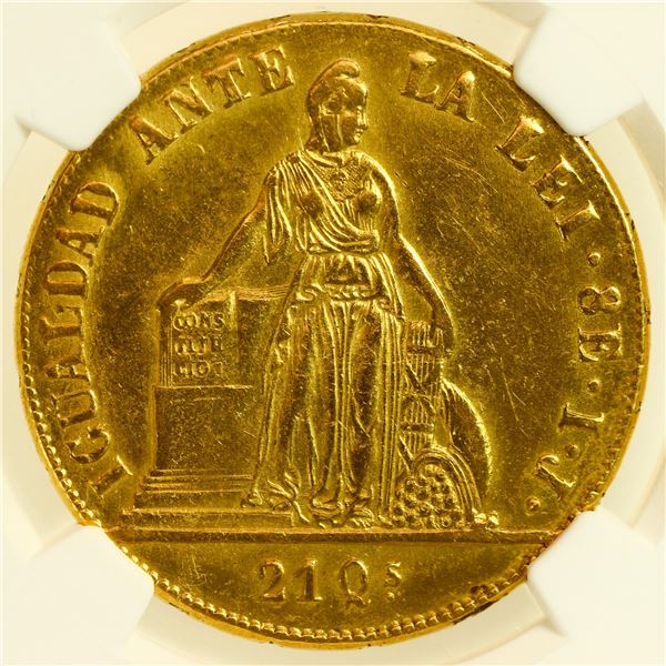 Santiago, Chile, gold 1 peso, 1860, PCGS MS61. KM-133; Fr-48. Bright piece with some reflectivity in the fields, bold strike with some die clashing,