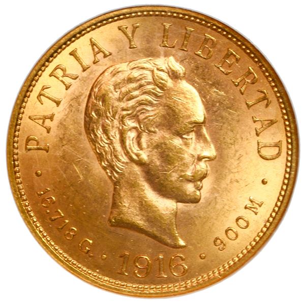Cuba (struck at the Philadelphia Mint), gold 10 pesos, 1916, Jose Marti, NGC MS 61. KM-20; Fr-3. Lustrous piece, some surface chatter.