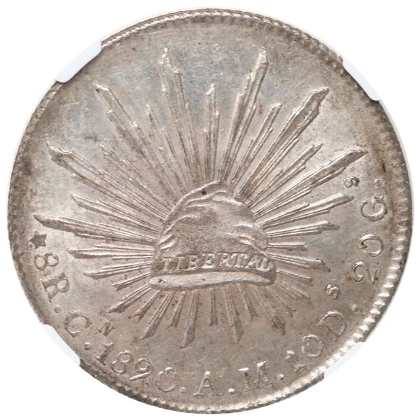 Mexico City, Mexico, cap-and-rays 8 reales, 1890 AM, NGC MS 63. KM-377.3; DP-Cn52. Scarce date in this grade, well-struck piece with speckled gold to