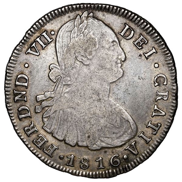 Popayan, Colombia, bust 8 reales, Ferdinand VII (bust of Charles IV), 1816 F, rare, NGC VF 30 ("top pop"). Restrepo-120.10; Cal-1369; KM-7...