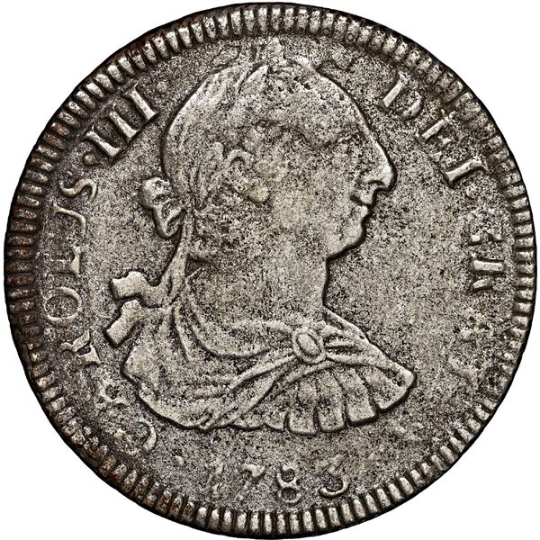 Mexico City, Mexico, bust 8 reales, Charles III, 1783 FF. Yonaka-M8-83; KM-106.2; Cal-1124. 23.87 grams. Nice, steely gray-toned piece with minor edge