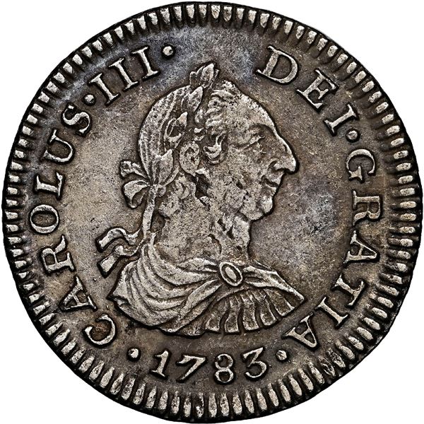 Mexico City, Mexico, bust 1/2 real, Charles III, 1783 FF, ANACS El Cazador Prime Select. Yonaka-M05.83; KM-69.2; Cal-215. Sharp UNC piece with no cor