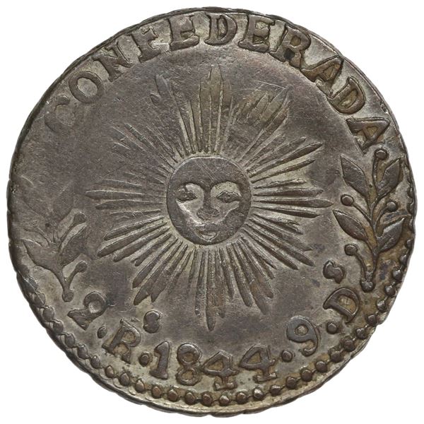 1948 - Cordoba, Argentina, 2 reales, 1844, CONFEDERADA variety, dot under rosette.Sedwick & Associates, LLC