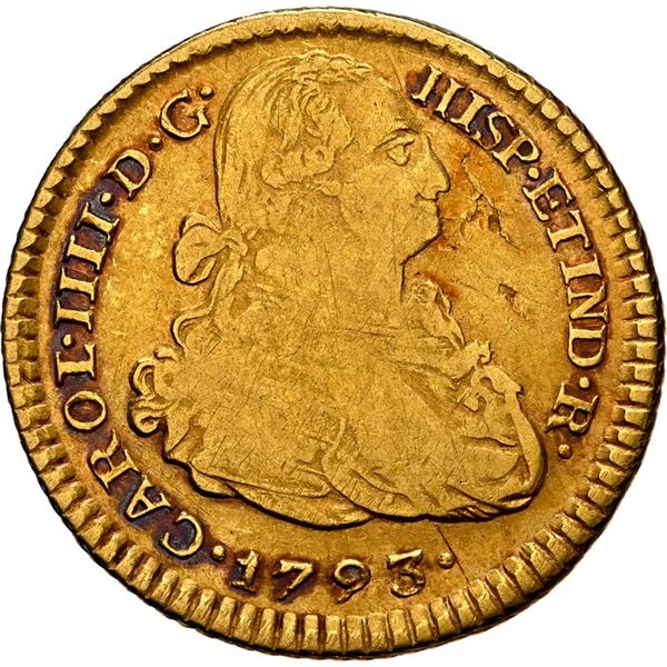 PERU, Lima, gold bust 1 escudo, Charles IV, 1793 IJ, large bust, NGC VF details / cleaned, ex-Almenara. Cal-1085; Fr-43; KM-89. Broad flan with full r