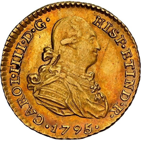 PERU, Lima, gold bust 1 escudo, Charles IV, 1795 IJ, NGC AU details / rev scratched, "top pop," ex-Almenara. Cal-1089; Fr-43; KM-89. Super...