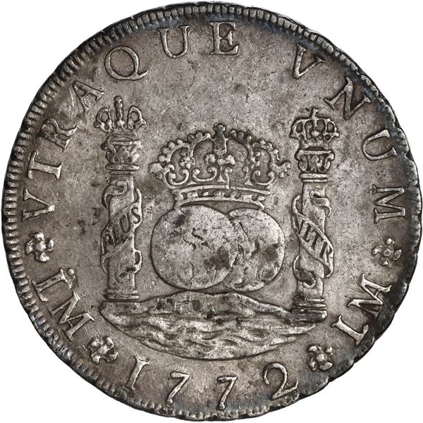 1331 - PERU, Lima, pillar 8 reales, Charles III, 1772 JM, no dot over right mintmark, ex-Brameld.Sedwick & Associates, LLC
