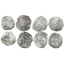396 - Lot of eight cob 2 reales (1 Mexico and 7 Potosi), Philip III, assayers not visible, all Grade 4, moSedwick & Associates, LLC
