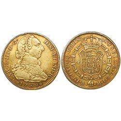 Madrid, Spain, bust 4 escudos, Charles III, 1787DV. CT-313; KM-418.1a. 13.37 grams. Red-toned XF with luster in legends, no problems.