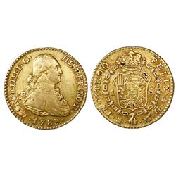 Madrid, Spain, bust 2 escudos, Charles III, 1788M. CT-459; KM-417.1a. 6.73 grams. Bold and lustrous XF/AU with light surface hairlines, light yellow c