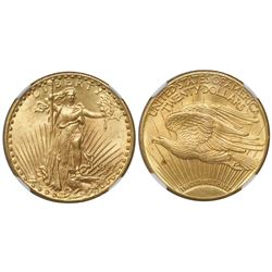 USA (Philadelphia mint), $20 (double eagle) St. Gaudens, 1928, encapsulated NGC MS 64. KM-131. Lustrous, few light bagmarks. NGC #4462376-001.