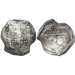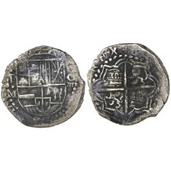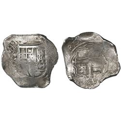 423 - Mexico City, Mexico, cob 8 reales, Philip IV, assayer P, with canvas-bag remains on shield.Sedwick & Associates, LLC