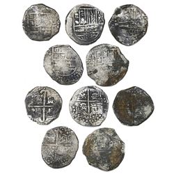 396 - Lot of eight cob 2 reales (1 Mexico and 7 Potosi), Philip III, assayers not visible, all Grade 4, moSedwick & Associates, LLC