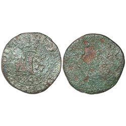 Mexico City, Mexico, copper 4 maravedis, Charles-Joanna, "Early Series," rare. Nesmith-1 type. 5.59 grams. Heavily corroded and greenish b...