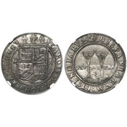 Mexico City, Mexico, 1 real, Charles-Joanna, "Early Series," assayer R (Gothic) at bottom between pillars, PLVSVL in oval panel, very rare...