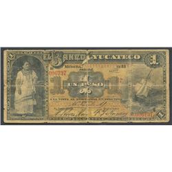 Merida, Yucatan, Mexico, Banco Yucateco, 1 peso, 189X (1891-92). Frampton-M563a; SCWPM-S466a. Serial 096737. Issued example of the Banco Yucateco 1 p