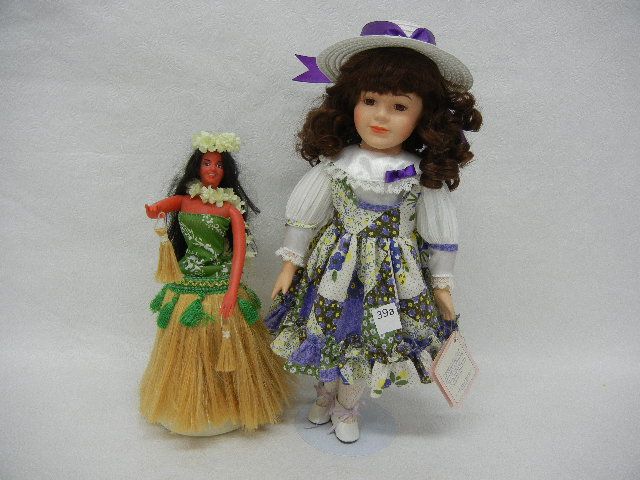 Treasures in Lace Porcelain Doll in Purple and Hula Doll