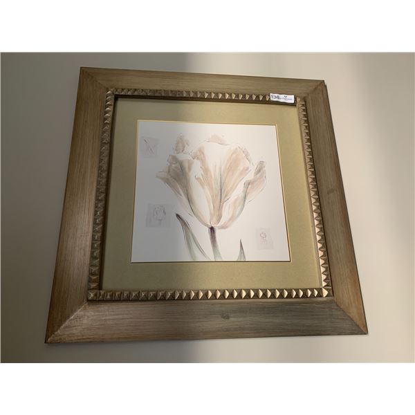 Gold/Metallic-Framed Floral Artwork "Iris" - Artist Unknown