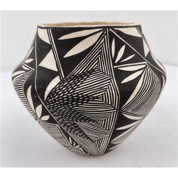 Huge and rare, incised Crenshaw Mound storage bowl with unique curvilinear and fine line motifs and four-point, scooped rim. Good condition, glued but