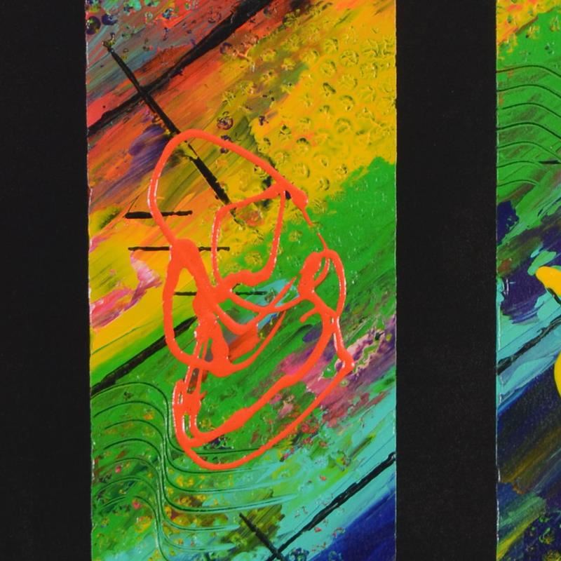"Treble Trouble" is a hand signed original acrylic painting on canvas by George Marlowe. This piece comes gallery wrapped and includes a Certificate of Authenticity. Measures approx. 26" x 26".