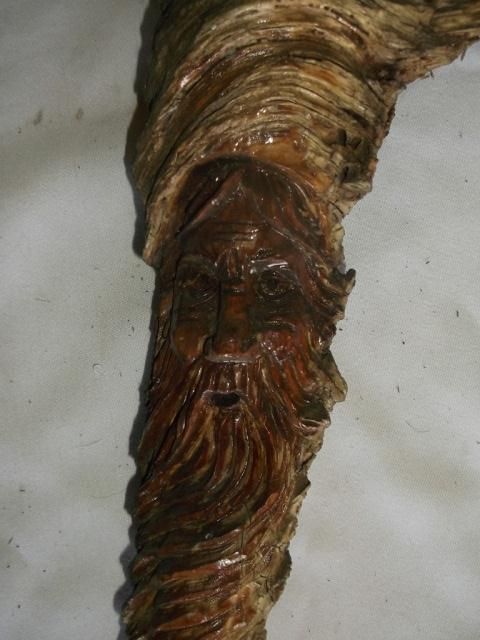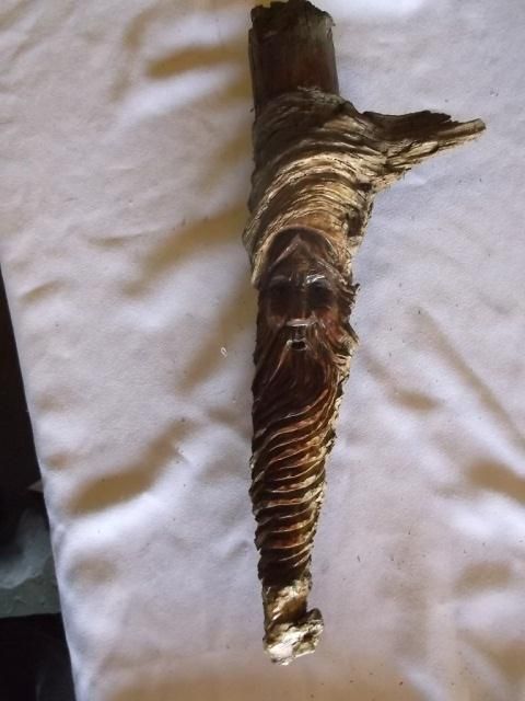 Old Man Carved in Wood Branch