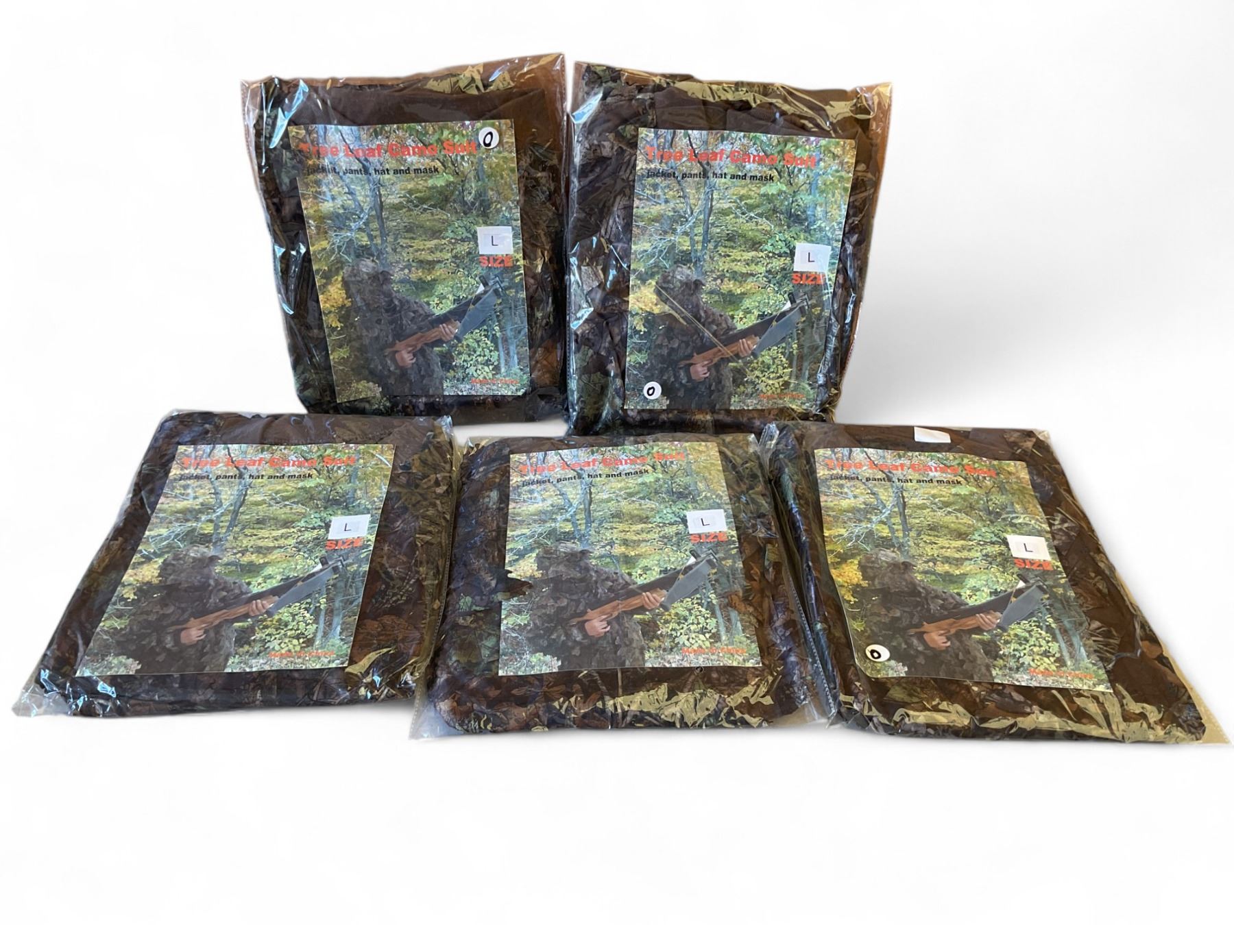 Tree Leaf Camo Suit Size Large X 5 Qty, Includes Jacket, Pants and Mask