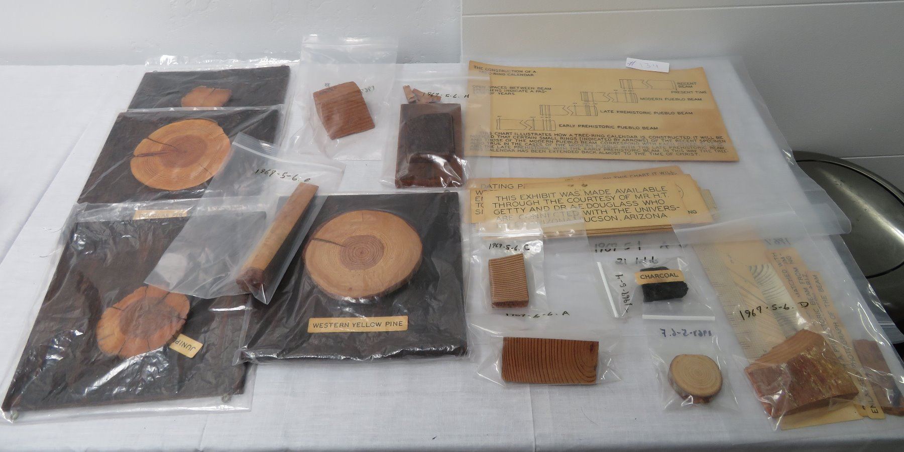 Tree Ring Dating Data & Artifacts, c. 1980s. Made of verious types of wood, the artifacts measure from 4" to 15". From a museum display, lots of charts and wood samples, Mr. H.T. Getty. Condition: Good, see images. Shipping: $26.50 w/insurance and signature.
