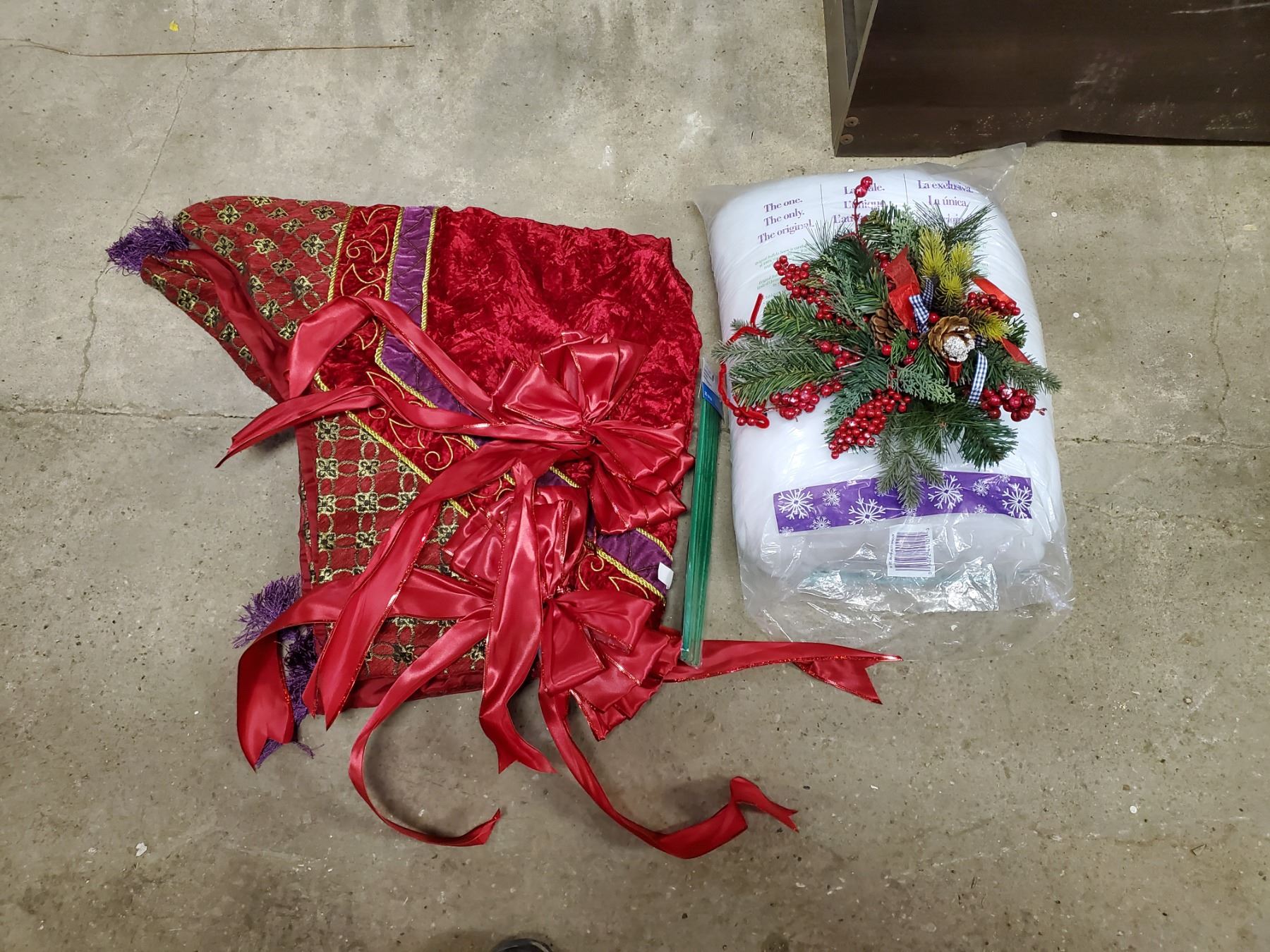 Tree Skirt, 2 Bows, Bag of Snow & Misc. Décor