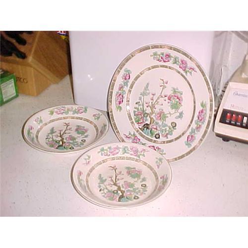 Tree of Life China; 3 Pcs.; (1) 10" dinner plate, signed Maddock of England; (2) 8" soup bowls; crown clarence england N0. B signed; condition all good but 1 soup bowl has a repair on outer lip (c) 1900's