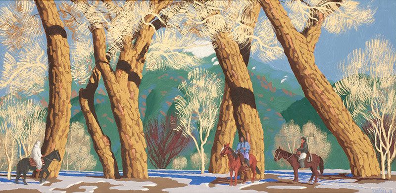 Carlos Hall, 1928 - 1997 | Signed: carlos hall taos, l/r | Media: Oil on linen | Dimensions: 15 by 30 inches