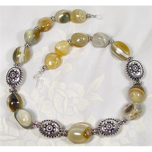 PLEASE note I only ship to the USA and Canada and if paypals is used the address MUST BE CONFIRMED<p>...Tremendous Agate Stone Silver Choker~155 GRAMS couple with the FINEST in ethnic tribal sterling makes this necklace the perfect accessory for any occasion... The choker has a length of 19" with the silver beads measuring 23x19mm for perspective to size..For those not familiar with metric 25mm=1"