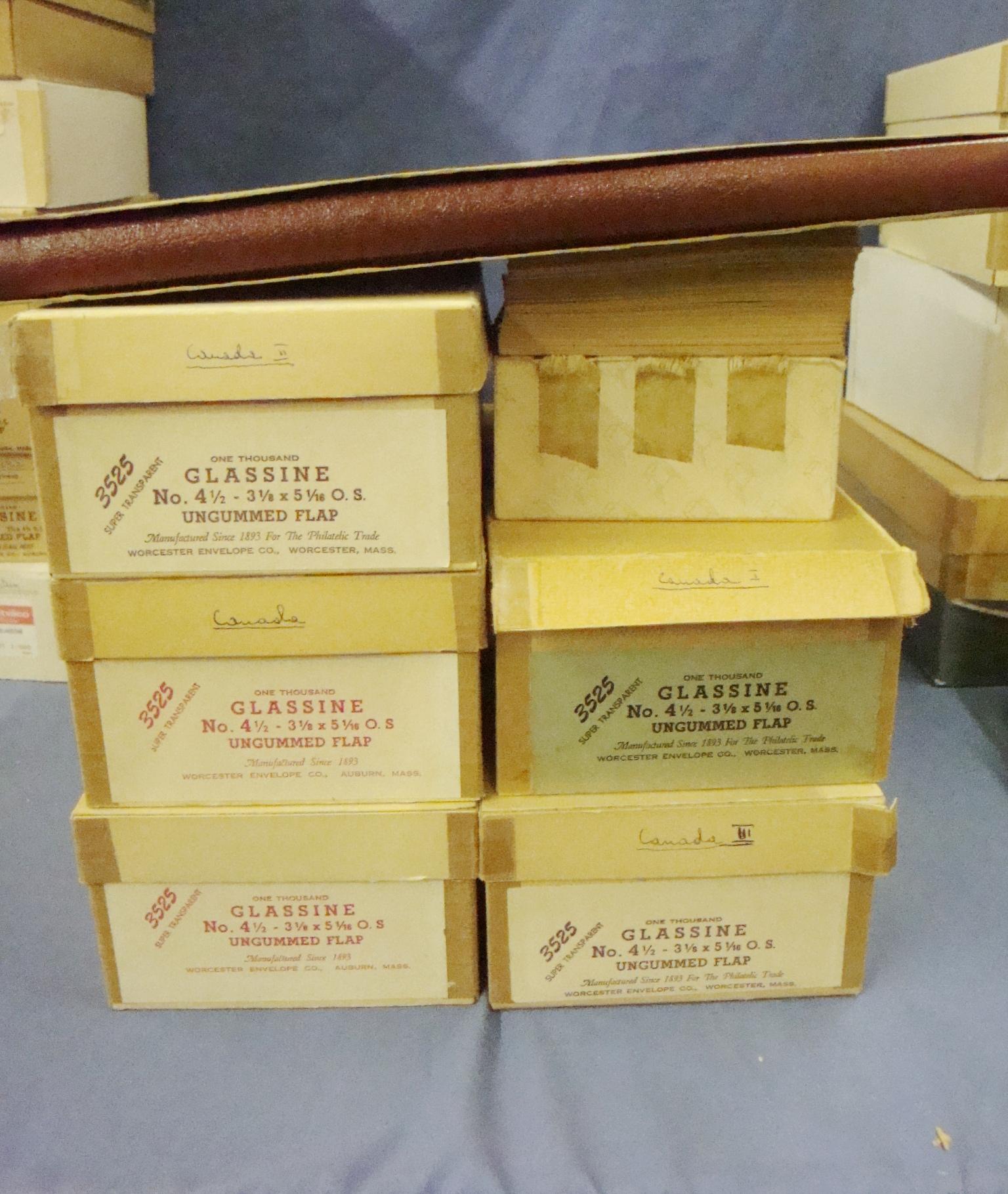Huge accumulation of (1000)'s stamps, all sorted by Scott number in glassines. Most are 1940's-1990 commems and regular issues in the form of singles, blocks and plate blocks plus some souvenir sheets in (7)binders and (5)glassine boxes. The face value he