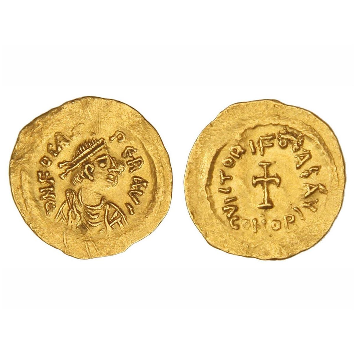 Tremisis. - FOCAS (602-610 d.C.). - CONSTANTINOPLA. - Anv.: D. N. FOCAS PER. AVG. Busto diademado a derecha. Rev.: VICTORI FOCAS AVG. CONOB. Cruz. 1,50 grs. AU. Se-633. MBC+. - -