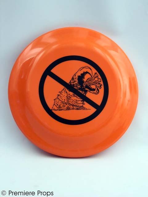 Orange frisbee w/ a picture of a no graboids on the front (approx. 9" in diameter / frisbees may vary in condition. Some are like new & some are in poor condition)