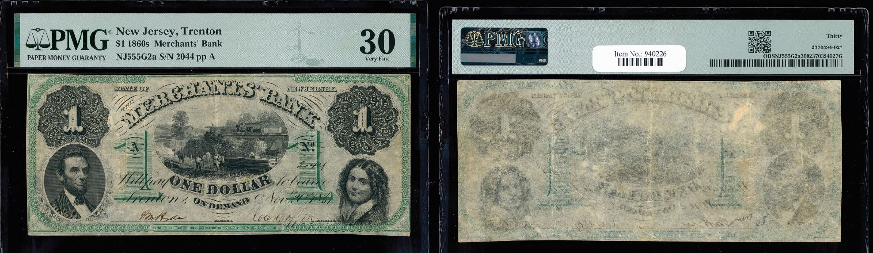 Trenton, New Jersey - Merchants' Bank $1 Nov. 20, 1861 G2a PMG Very Fine 30 (Haxby-G2a),