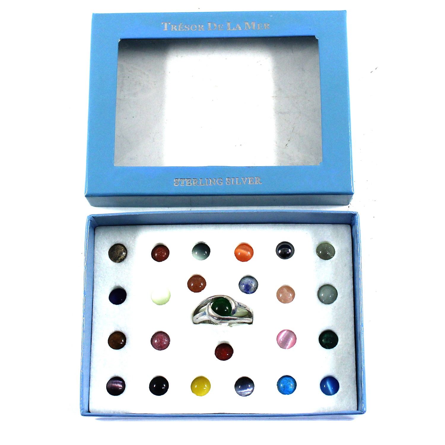 Tresor De La Mer Sterling Silver Size 7 Ladies Ring with 24 Different Interchangeable Stones (Some light tarnish marks)