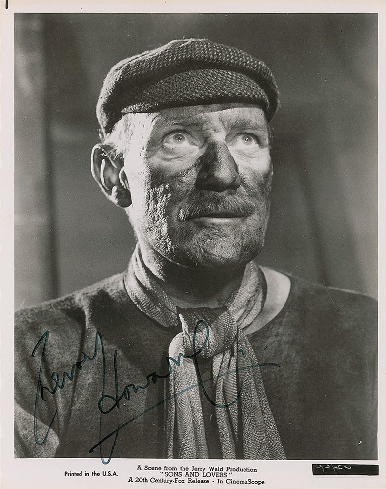 Glossy 8 x 10 20th Century Fox promotional photo for Sons and Lovers, signed in black felt tip. In fine condition, with mild scattered surface bends and creases.