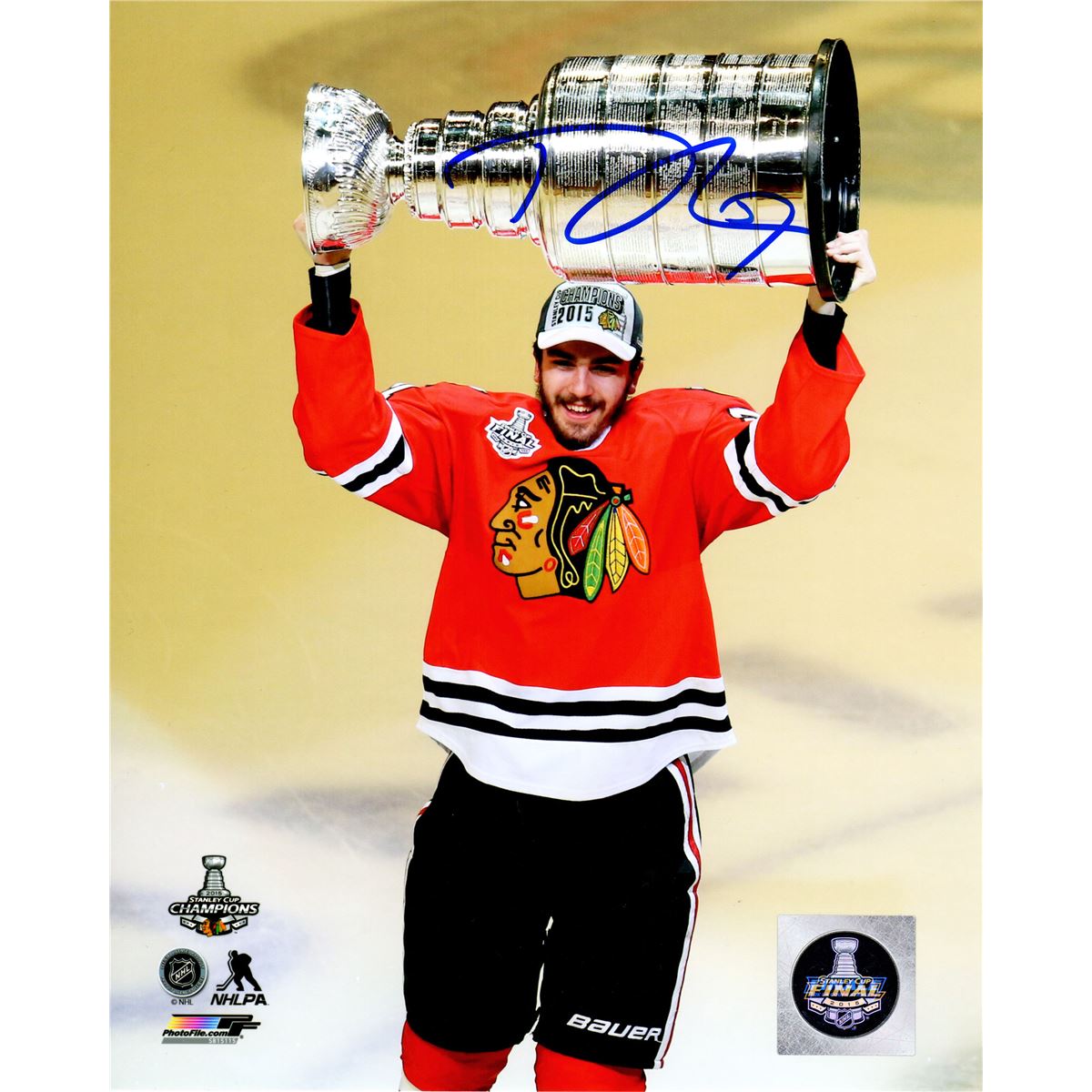 Trevor Van Riemsdyk signed Chicago Blackhawks 8x10 photo of him holding the 2015 Stanley Cup trophy. Item comes with a Schwartz Sports Memorabilia tamper-proof numbered hologram and Certificate of Authenticity which can be verified online.