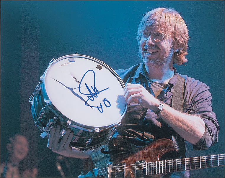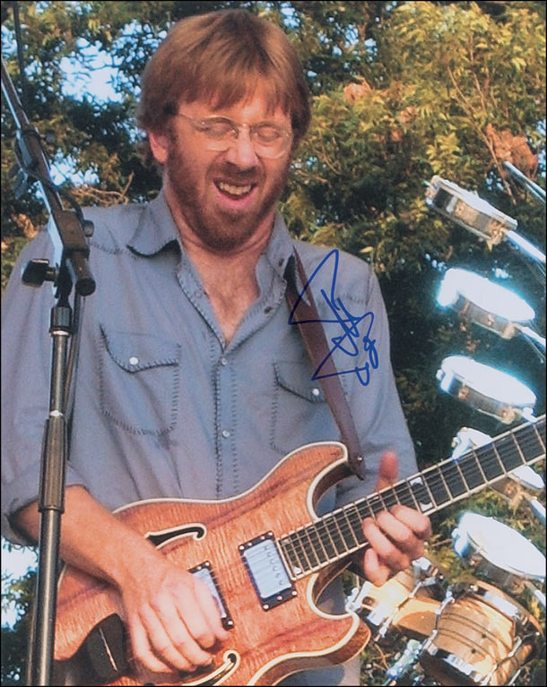 Two satin-finish concert photos, one 8 x 10 and the other 10 x 8, each signed in blue felt tip. In overall fine condition.