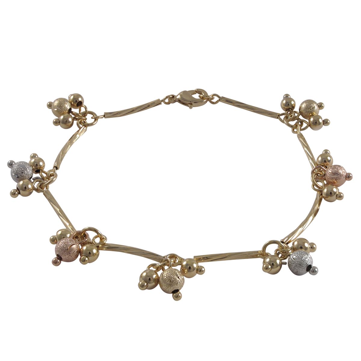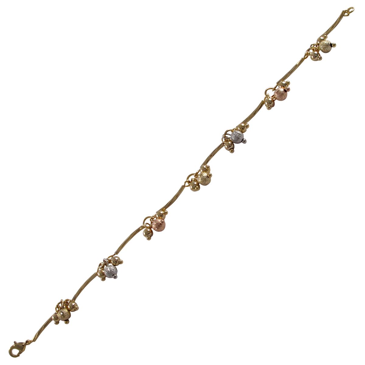 Tri Color 5Mm And Gold 4Mm Balls Bunches Dangling, Gold Plated Brass Bracelet, 7.5