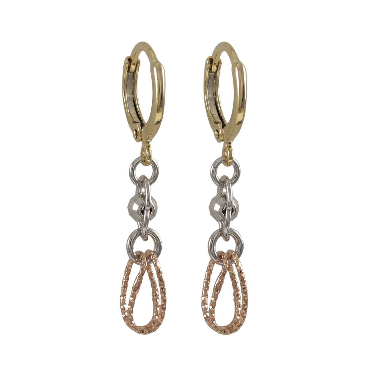 Tri Color Brass Disco Ball Hoop Dangle Pierced Earrings, 1.50"